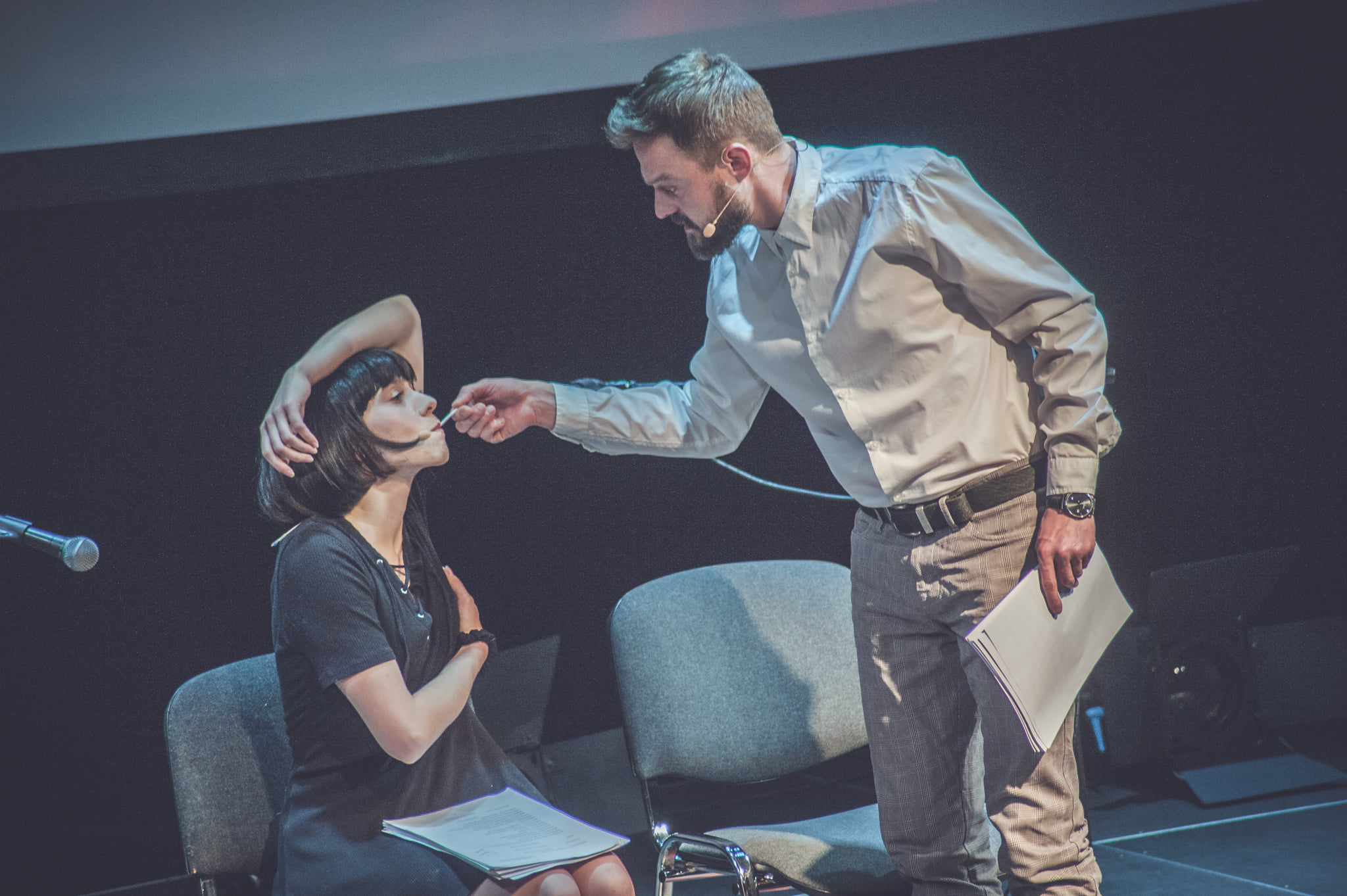 – Tytułowy „grooming”, w moim odczuciu, jest jedynie pretekstem do podjęcia rozważań nad ogólną kondycją człowieka, jego samotnością, niemożnością ucieczki od własnych słabości i pragnieniu bycia zrozumianym – opowiada reżyserka czytania Paulina Eryka Masa. – Linia, która oddziela to, co normalne od tego, co nienormalne zdaje się być w tekście tym nad wyraz cienka. Pytanie tylko, czy stawiając tezę, że każdy z nas nosi w sobie pewien poziom dewiacji, można mówić w ogóle o kategorii „normalności”? Świat nie jest czarno-biały. Świat jest kolorową krainą czarów, w której każdy z nas goni za swoim królikiem. To od nas jednak zależy w jaki sposób dokonamy, idąc tropem freudowskich teorii, sublimacji naszych popędów. Jak mówi bohater sztuki: „To, co jest naprawdę nieznośne to to, że można żyć ze wszystkim”… To fascynujące jak wiele lustrzanych drzwi otwiera przed nami autor tekstu, a my zmniejszamy się i rośniemy, chowamy i podążamy, wstydzimy i dumnie podnosimy głowę niczym Alicja, która wpadła do nory i nie ma pojęcia jak z niej się wydostać.”